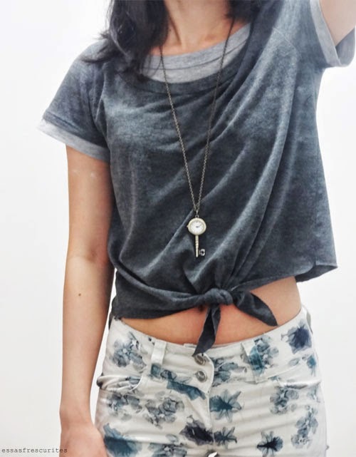 E pronto! Lembre-se de dar uma esticada na camiseta, para que ela dê aquela famosa enroladinha, dessa forma, parecerá que você comprou a peça assim. Depois, é só fazer o nó.