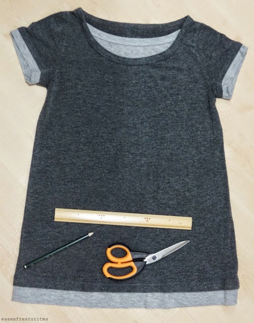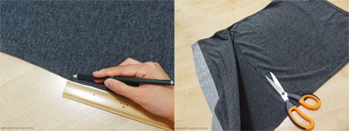 Marque qual o comprimento que você quer que sua camiseta tenha, e então corte a parte de trás da camiseta em linha reta.